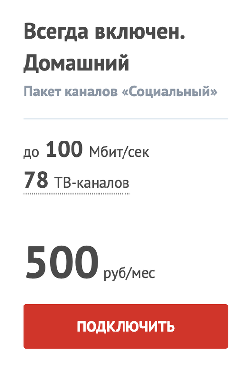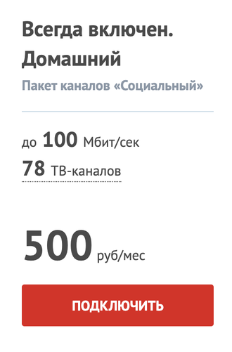 Чтобы подключить Интернет 100 Мбит + Телевидение 78 каналов " за 500рублей в месяц,
