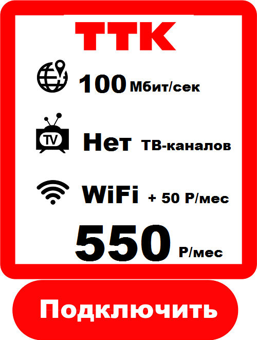 Скорость интернета от провайдера ТТК это- 100 МБИТ за 550 рублей в месяц.